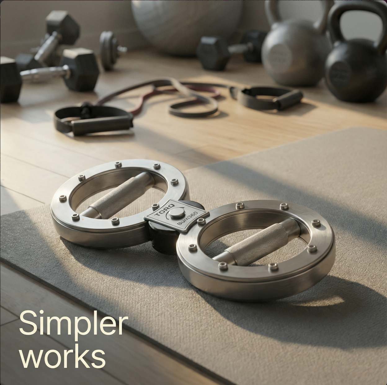 TORQ Burn360™ was designed to do less — and do it better. One smooth, continuous movement that keeps your arms and shoulders engaged without dead spots, noise, or complexity. No racks. No cables. No clutter.